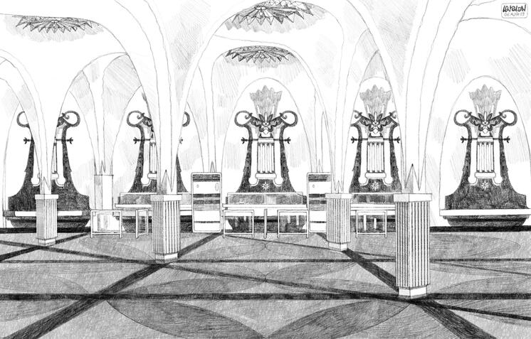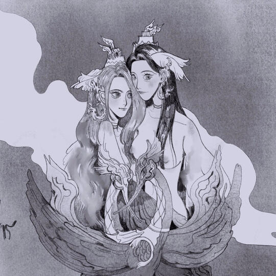 ลงสีด้วยดินสอ เท็กซ์เจอร์ดิบๆ มีความสากของไส้ดินสอ เป็นสีขาวดำ/โมโนโทน