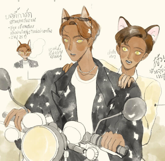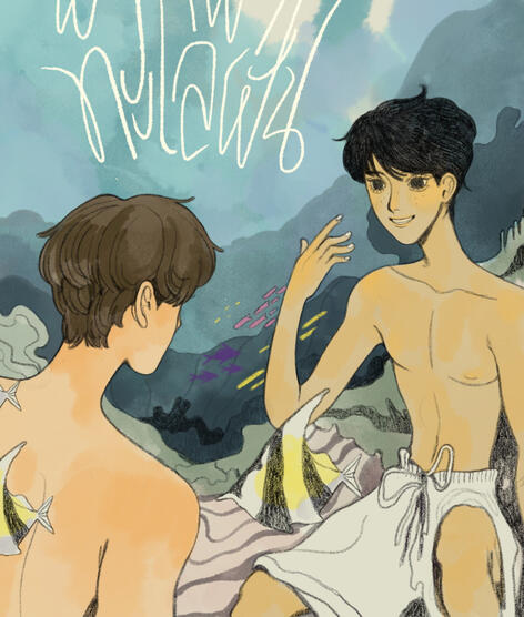 วาดกรอบด้วยดินสอ มีการลงสีน้ำแบบเบลนด์ไม่เนียนมาก เท็กซ์เจอร์สีน้ำโปร่งบาง